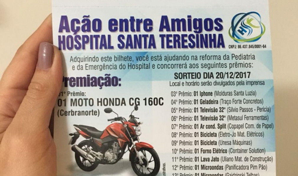 Com cerca de 15 prêmios, entre eles duas motos zero quilometro, o hospital Santa Teresinha realiza uma importante Ação entre Amigos, com objetivo de arrecadar recursos para reforma da Pediatria e da Emergência do Hospital.