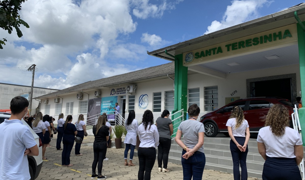 Foi realizado um minuto de silêncio em frente ao Hospital Santa Teresinha rogando forças aos profissionais que ultrapassam os limites da exaustão e cansaço no atendimento aos pacientes que necessitam e bênçãos a todos.